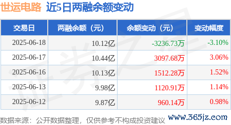 本站消息,6月18日,世运电路(603920)融资买入1.36亿元,融资偿还1.69亿元牛策略,融资净卖出3256.88万元,融资余额10.1亿元,近20个交易日中有13个交易日出现融资净买入。